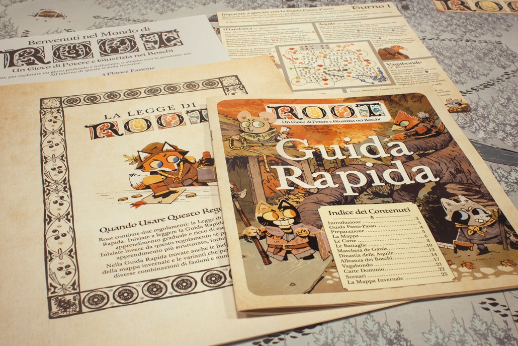 Root è un gioco strategico e completamente asimmetrico: ogni fazione ha obiettivi, abilità e stili di gioco unici. Ogni partita offre sfide diverse, decisioni cruciali e un alto livello di rigiocabilità.