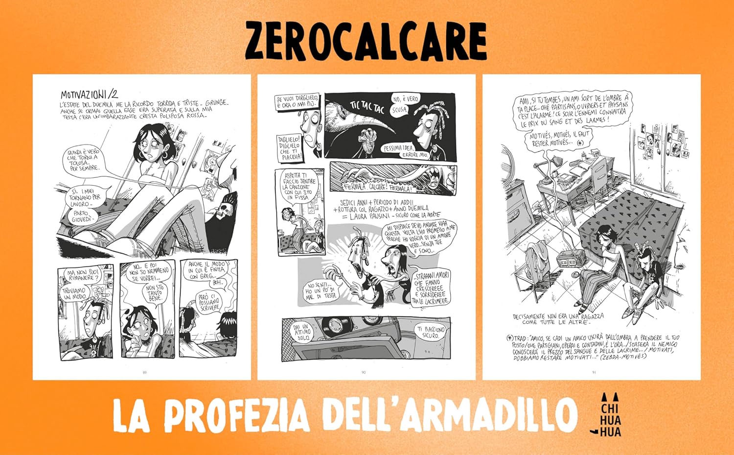 “La profezia dell’armadillo” è il primo romanzo grafico di Zerocalcare, e ne ha stabilito i codici narrativi fin dal 2011, quando è uscito per la prima volta come autoproduzione. Storia di un quasi trentenne che viene a patti con la perdita di una cara amica, è un best seller da 300.000 copie vendute, torna in una nuova edizione tascabile, a inaugurare la collana “I Chihuahua”, dedicata ai classici per sempre del catalogo BAO Publishing, a un prezzo popolare.